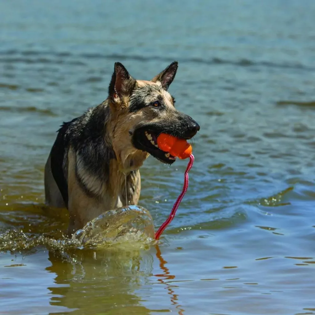 O KONG Aqua é ideal para brincadeiras na água, garantindo momentos de diversão e interação saudável para o seu cão.