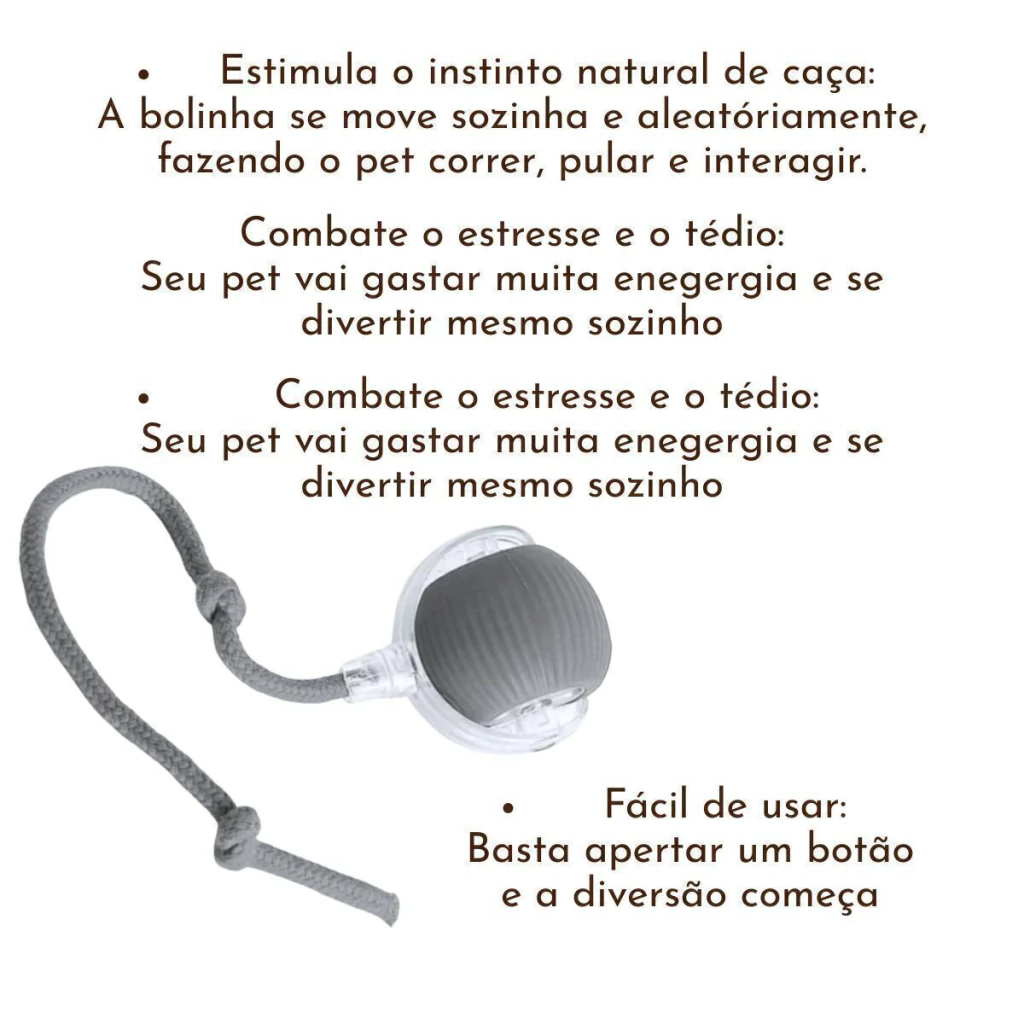 Transforme o momento de lazer do seu gato com um brinquedo interativo que simula presas reais! A Bola de Rolamento Automática com Cauda Falsa estimula o instinto caçador dos felinos, promovendo exercício, diversão e enriquecimento ambiental de forma segura e moderna.