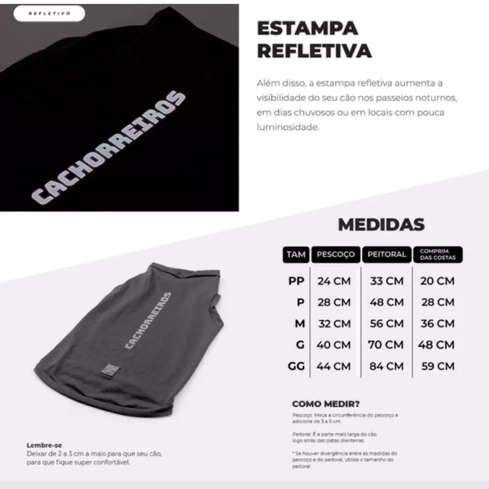 Além disso, a estampa refletiva aumenta a visibilidade do seu cão nos passeios noturnos, em dias chuvosos ou em locais com pouca luminosidade.