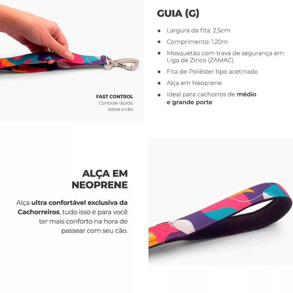 Guia Cachorreiros é ideal para todos os cães, com mosquetão em liga de zinco com giro de 360º que confere ao mesmo tempo segurança e movimento.