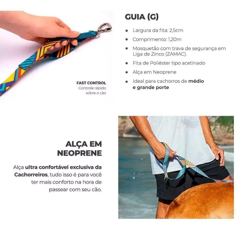 Guia Cachorreiros é ideal para todos os cães, com mosquetão em liga de zinco com giro de 360º que confere ao mesmo tempo segurança e movimento.