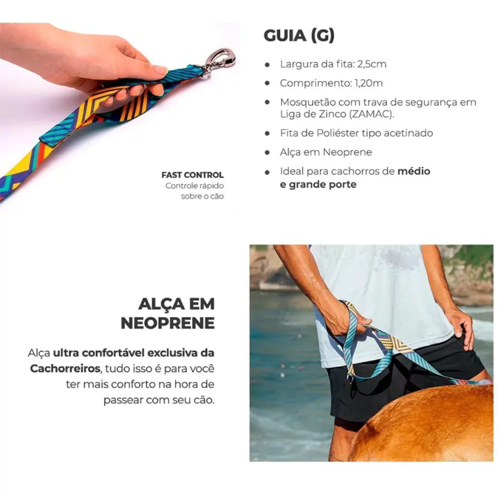 - FAST CONTROL: Alça extra localizada próximo ao mosquetão para um controle rápido do cachorro. (Apenas para tamanho G)