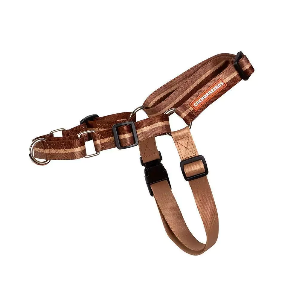 - Peitoral para Cachorro Anti Puxão com Fivela em Nylon Curva Café -