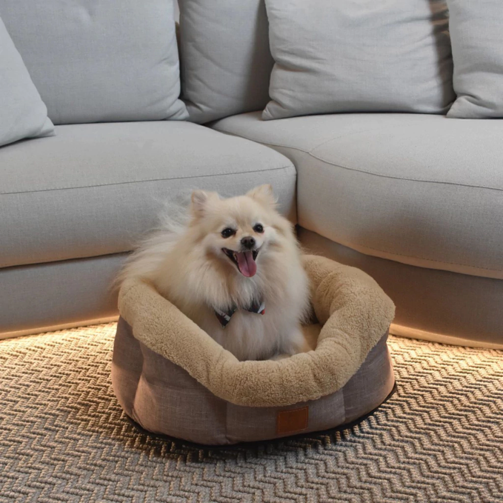 Cama pet estilo concha, feita em tecido de estofado extra soft e borda em pelúcia carneirinho, proporcionando máximo conforto e aconchego para o seu pet.